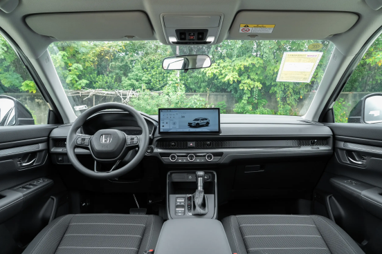 Inside, the CR-V upholds the philosophy of “harmony between technology and practicality”, ditching redundant decorations for a clean, generous layout. The center console is extensively wrapped in soft plastic with stitching; while plastic trims remain in some areas as a minor drawback, overall texture is markedly improved over previous generations. A 15.6-inch vertical central touchscreen and 12.3-inch full LCD instrument panel form a wrap-around interactive interface, with a three-tier information layout that makes navigation, vehicle status and multimedia controls clear at a glance. Physical air-conditioning controls are retained for easy operation, avoiding the hassle of pure touch controls.